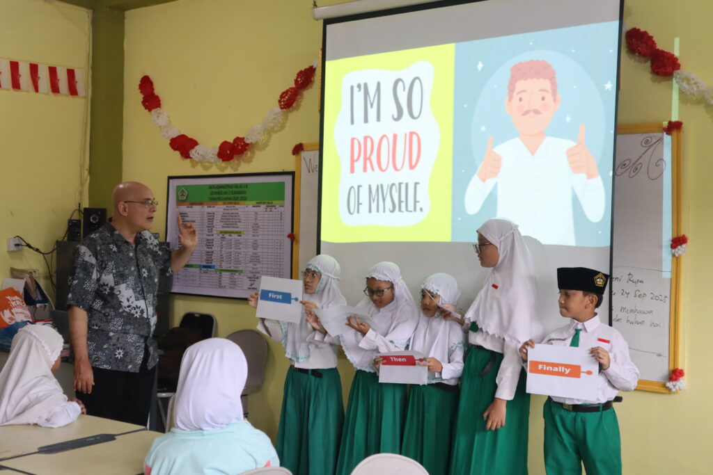 Tidak hanya itu, Mr. Fab juga memberi apresiasi berupa pujian dan hadiah bagi siswa yang berani mencoba menjawab atau bertanya. Hal ini membuat anak-anak semakin termotivasi dan percaya diri untuk berpartisipasi. Mereka terlihat sangat bangga saat mendapat pujian langsung dari seorang guru tamu dari luar negeri.